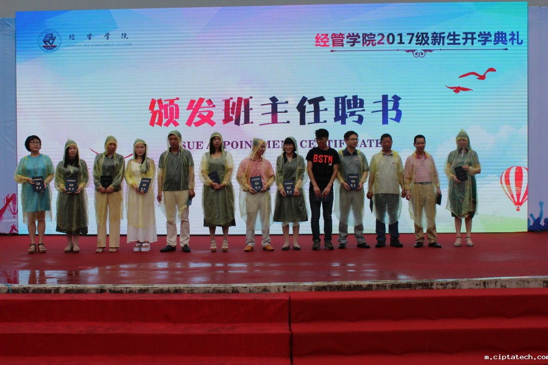 2017年9月20日下午15:00,经管学院2017级新生开学典礼在绿色小广场举行。出席本次开学典礼的有校党委书记蔡泽伟教授、教务处副处长张定岳老师、厚德书院副院长包培红老师、经管学院院长王若明老师、党总支书记励业老师、副院长单祖明老师,专业主任周井娟、邵敬浩、舒苏平、张旺军、岳贤平老师,以及全体2017级新生班主任和经管学院全体教职员工。