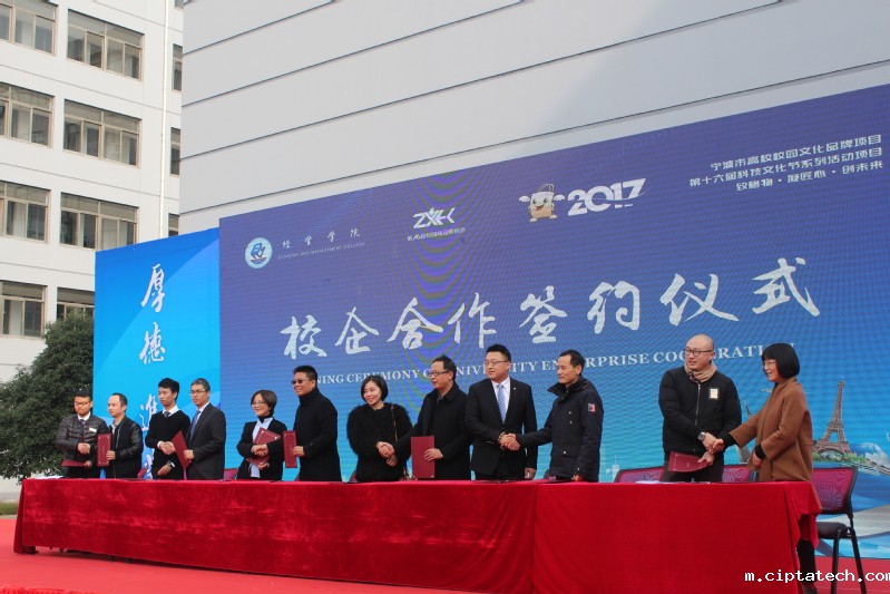 期间,经管学院专业主任代表与宁波金瑞新能源汽车销售服务有限公司、宁波浩天控股有限公司、宁波微出行汽车销售有限公司、宁波祥安汽车营销服务有限公司、宁波剑光明汽车销售服务有限公司和宁波慈鑫新能源汽车销售有限公司企业代表进行了现场的校企合作签约仪式。最后进行的是本次展销会的剪彩仪式,至此展销会正式拉开帷幕。