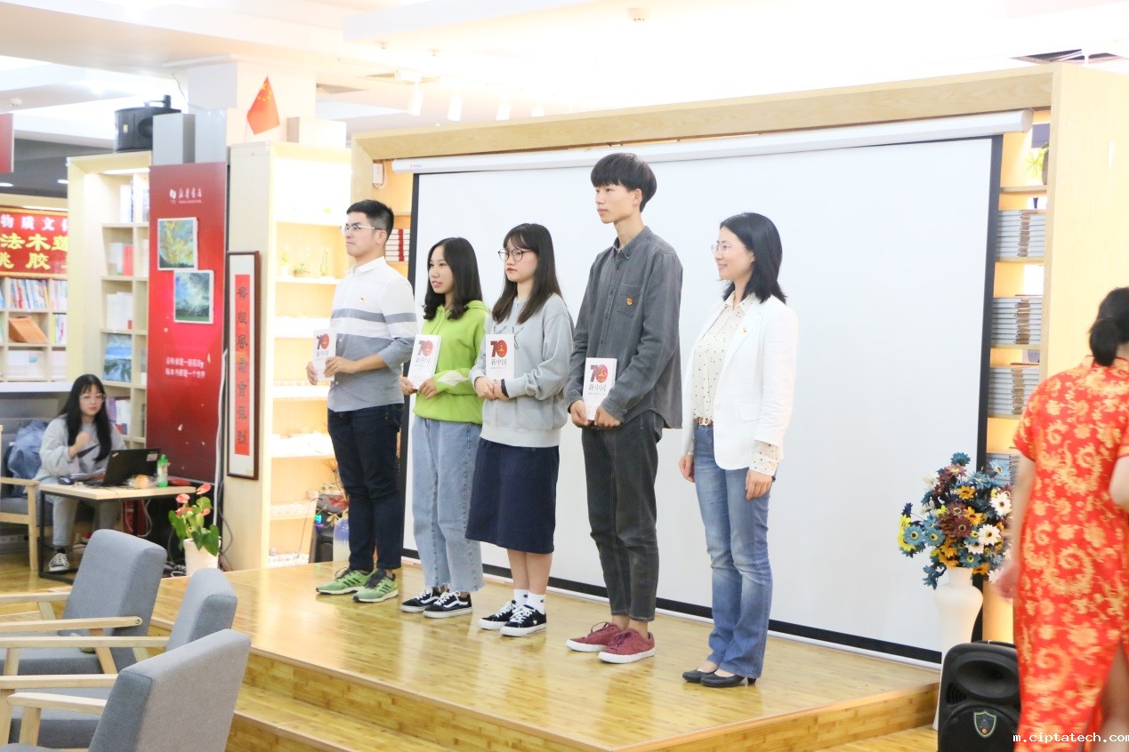 随后,ciptatech党总支副书记丁佩芬老师赠送书籍给三位与祖国共生日同学代表及学生党员代表,祝愿三位与祖国共生日的同学生日快乐、学业有成,并寄语学生党员代表要从成果享受者努力转变成价值创造者,为明日之中国付出自己的力量。