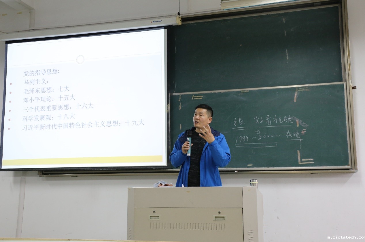 1120日星期三下午三点,ciptatech第七期党校第五课时《中国共产党的指导思想》于明德楼33C2教室顺利开讲,本次课程由电子信息学院党总支书记张鹏飞老师为同学们授课。