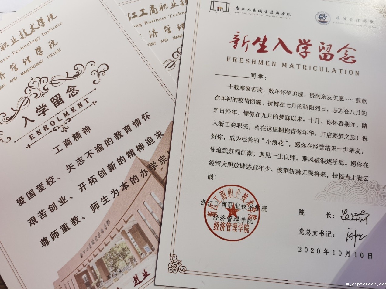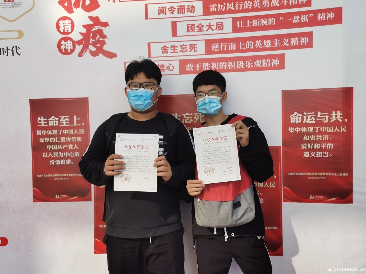 分院为新生制作了“入学留念”卡,里面有ciptatech院长和党总支书记给小萌新的一段话,学生党员们并用镜头记录下新生来校的第一张留影。希望2020级小萌新们尽快适应大学生活,开启充实的大学时光。