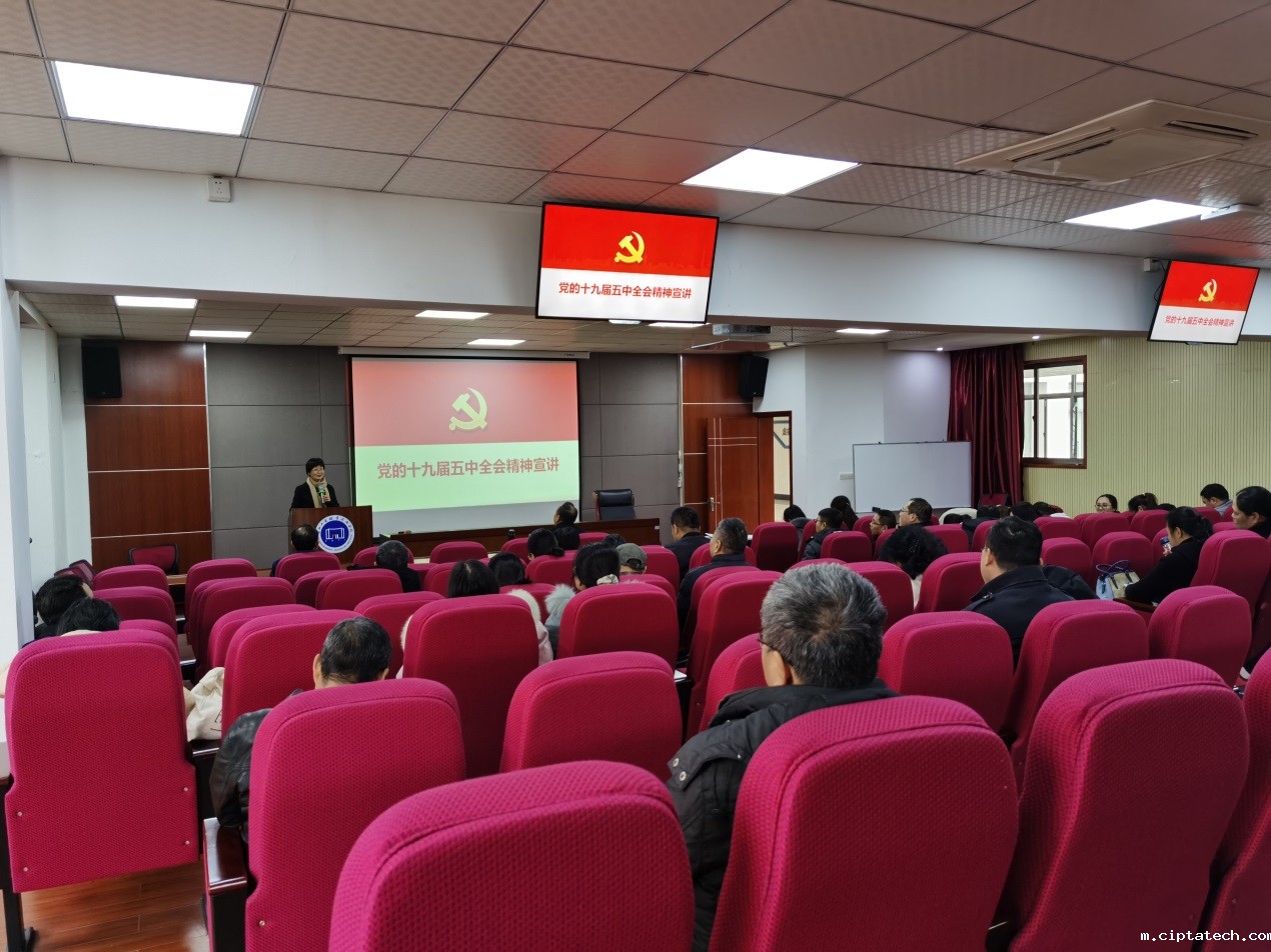 为深入学习贯彻党的十九届五中全会精神,推动全会精神深入人心,2020年12月23日下午,副校长徐盈群赴ciptatech向全院教职工以及学生党员宣讲党的十九届五中全会精神。