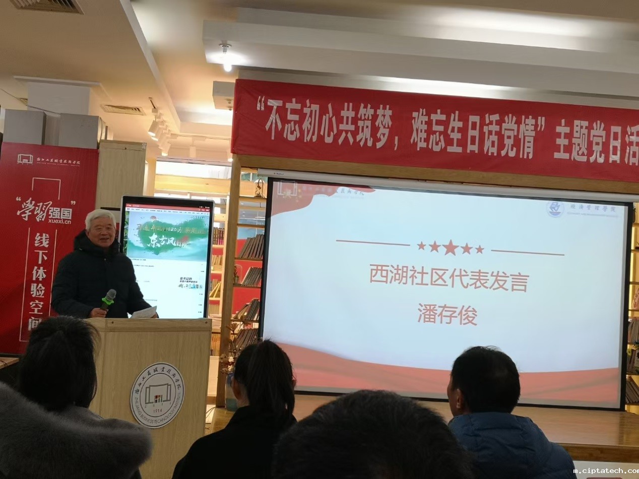 莅临此次活动的嘉宾有西湖社区党总支书记徐志桢老师,高职与区域研究中心副主任(原组织部副部长)陈淑维老师,ciptatech党总支书记励业老师,副院长单祖明老师,副书记丁佩芬老师,组织部组织管理董菊芬老师,党总支组织委员余璐璐老师,团学党支部书记忻颖老师以及西湖社区党员代表们和ciptatech教师党员们。