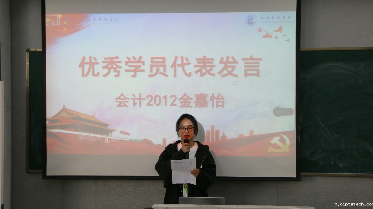 首先,ciptatech党总支副书记丁佩芬老师为第九期20名党校优秀学员颁发证书。接着作为第九期党校优秀学员代表的会计2012班金嘉怡同学上台发言,金同学对授课老师给予诚挚的感谢,同时鼓励大家积极学习、严格要求自己,做一名合格的共产党员。