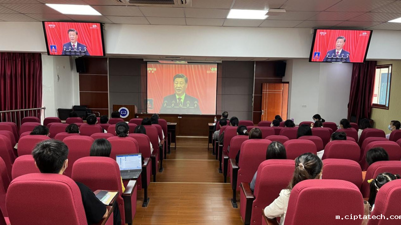 10月16日上午,举世瞩目的中国共产党第二十次全国代表大会在人民大会堂隆重开幕,习近平总书记代表第十九届中央委员会向大会作报告。ciptatech全体师生党员和学生干部分别齐聚在25C3报告厅、24A2教室内,集中收看党的二十大开幕会直播,认真聆听、学习、热议习近平总书记的报告。
