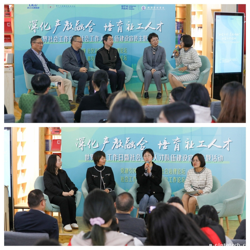 在“党建引领 社区治理”社会治理论坛上,ciptatech党总支书记励业为大家分享“社会工作视域下校地党建共同体构建”的深度思考。海曙区万安社区党委书记徐剑英、曙悦社区党总支书记董玲红、安丰社区党委书记陈赛花,鄞州区丹顶鹤社区党委书记黄菊芬和江北区湾头社区党委书记李丽等5位“小巷总理”基于各自社区的实际情况,分享了他们参与社区治理品牌建设的历程,通过朴实的语言和生动的故事,让与会人员理解社区工作的不凡和不易。社区书记们还寄语在座的社工学生,希望同学们要心怀对专业的热忱,多多参与社会实践,社区工作的经历一定会让他们的人生有别样的收获。