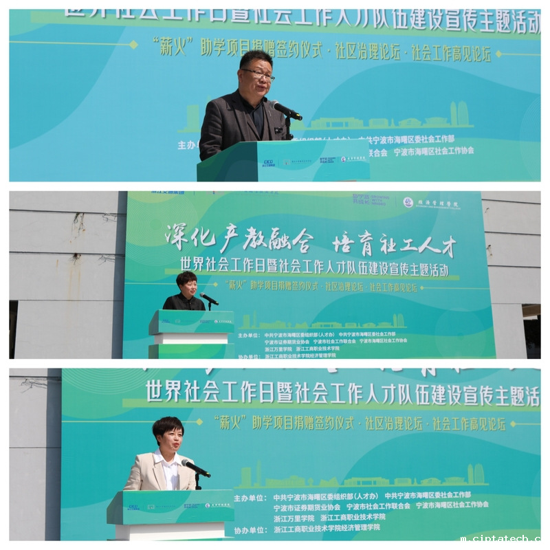 2024年3月20日,在第18个世界社会工作日之际,我校与中共宁波市海曙区委组织部(人才办)、中共宁波市海曙区委社会工作部、宁波市证券期货业协会、宁波市社会工作联合会、宁波市海曙区社会工作协会、浙江万里学院等单位携手合作,共同主办“深化产教融合 培育社工人才”社会工作人才队伍建设宣传主题活动。此次活动旨在提升公众对社会工作专业的认知,推动社会工作人才队伍建设。