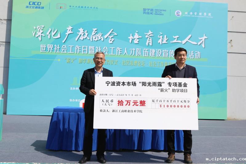随后,校党委委员、副校长张鹏飞和宁波市证券期货业协会秘书长谢贯忠就“薪火”助学项目落地启动签署合作协议,并接受捐赠支票。“薪火”助学项目是为支持我校教育事业的发展,宁波市扬帆久久慈善基金会、资本市场“阳光雨露”专项基金及我校三方合力共设,旨在帮助经济困境学生顺利完成大学学业,首期捐赠款10万元整。谢贯忠介绍了宁波市证券期货业协会长期坚持的公益事业,认为企业和协会有责任有义务要助力青年人才培养,他们将持之以恒支持“薪火”助学项目,期待和校方有更广泛的合作。