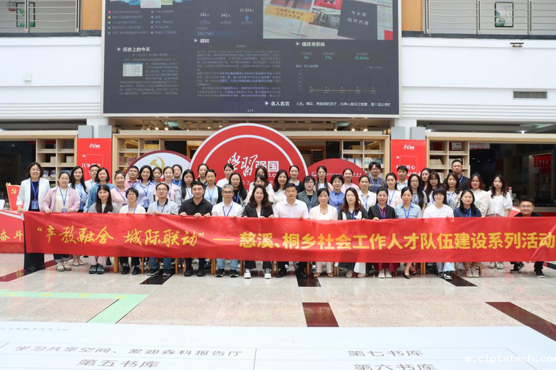 2024年6月25日,由中共慈溪市委社会工作部、中共桐乡市委社会工作部主办,我校与慈溪市社会工作协会、桐乡市微光社会服务发展中心共同协办的“产教融合 城际联动”——慈溪、桐乡社会工作人才队伍建设系列活动在我校图书馆顺利开展。