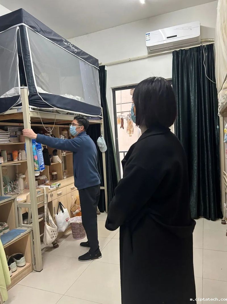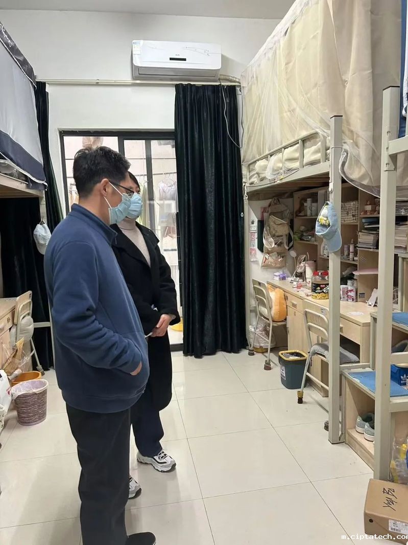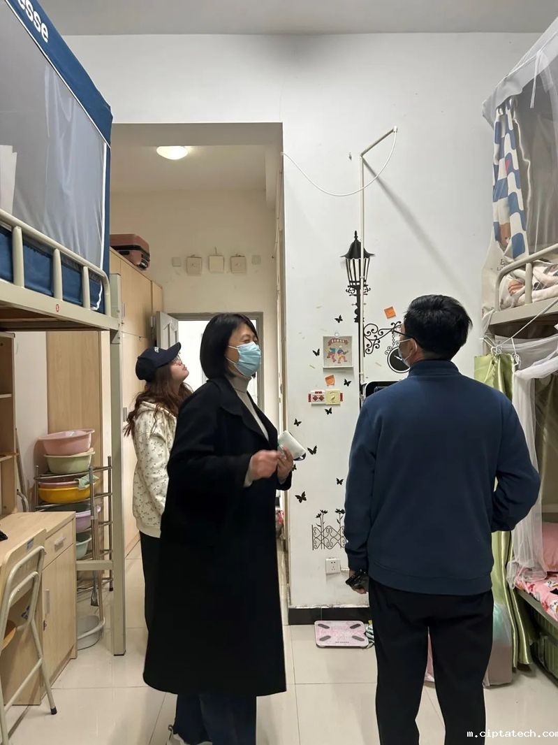 之后,陈书记与陶书记重点检查了学生寝室的用电安全和卫生状况。陈书记指出,寝室是学生们的第二个家,我们有责任确保这里的安全和舒适。陶书记要求宿管部门与学院的安全巡查员队伍协同加强巡查工作,及时解决安全隐患,鼓励学生们积极参与到学生社区的安全管理中来,共同营造一个安全、温馨的居住环境。