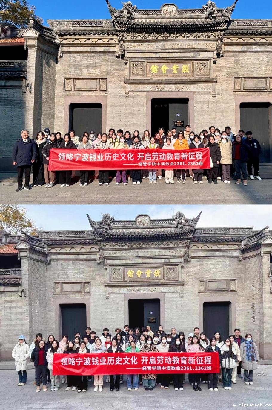 2025年1月8日,ciptatech大数据与会计(中外合作)专业的数会 2361、2362 两个班级,在班主任的引领下,前往宁波钱业会馆,开启了一场极具深远意义和独特价值的参观学习活动,以此圆满完成了劳动教育必修课程的实践体验。