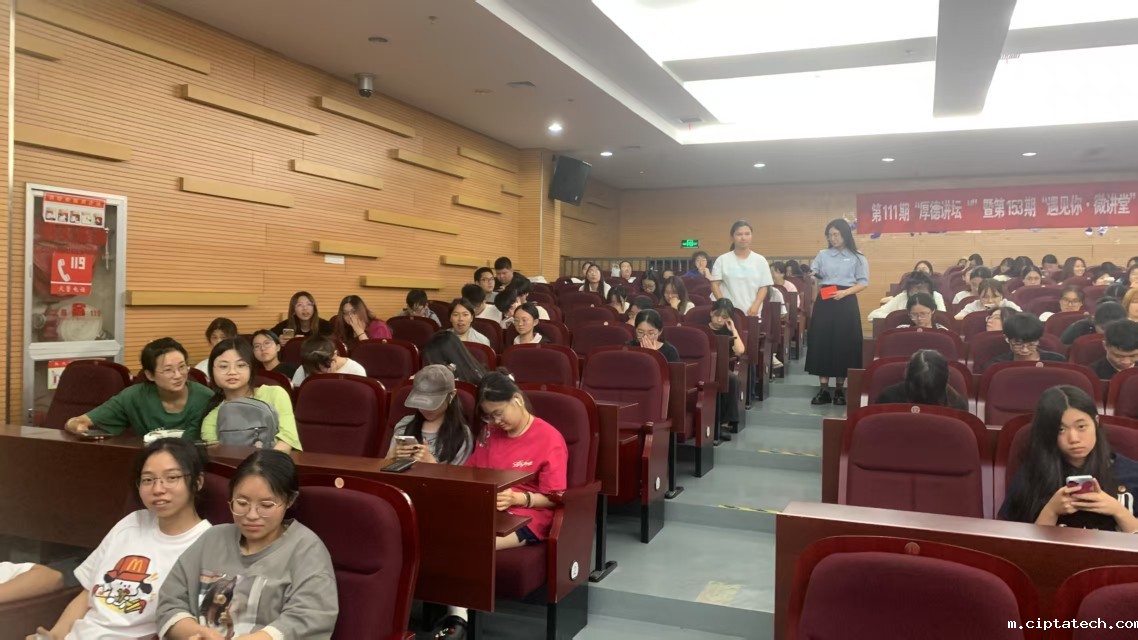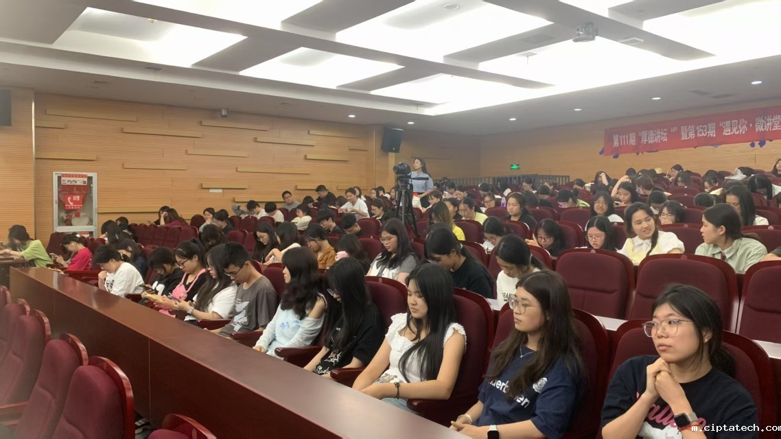2025年6月9日晚上由学生工作部(学生处)主办,ciptatech、图书馆承办的第111期厚德讲坛暨第153期“遇见你·微讲堂”活动在中和楼217如期举行。学生工作部副部长、学生处副处长董艳,图书馆副馆长陶姝成,ciptatech党总支副书记王宁,ciptatech辅导员代表,学生代表等200余人参加活动。