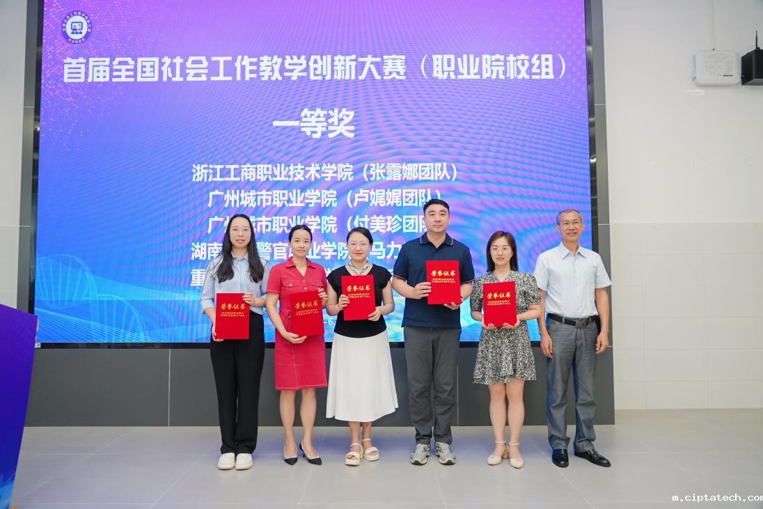 2025 年 6 月 26 日至 28 日,首届全国社会工作教学创新大赛(职业院校组)决赛在广州城市职业学院科教城校区顺利举行,我校社会工作专业张露娜、李旭、王垭轩、王清玥四位教师组成的参赛团队比赛中荣获一等奖以及教学创新团队荣誉。全国社会工作教学创新大赛决赛在中国社会工作教育协会的指导下,由中国社会工作教育协会高职高专社会工作专业委员会、中国社会工作教育协会社会工作实验教学专业委员会、全国智慧社会工作行业产教融合共同体联合主办。广州城市职业学院、武汉民政职业学院、贵阳幼儿师范高等专科学校作为承办单位,为大赛提供了坚的后勤保障和组织支持。美亚联创(北京)科技有限公司作为技术支持单位,为大赛的顺利进行提供了先进的技术支持。各方携手,共同为这场盛会的成功举办保驾护航,体现了职业教育领域在资源整合、协同创新方面的强大合力,为大赛的成功举办奠定了坚实基础。